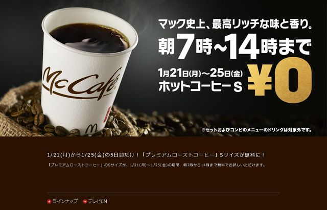 今週はマクドナルドのホットコーヒーSが無料でお試しできます。